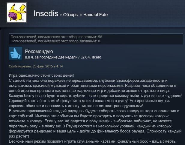 Что будет, если скрестить такие жанры, как RPG и карточную игру? Получится Hand of Fate, которая сначала позволит сыграть в ККИ, а потом отправиться на поле боя, традиционное для ролевых игр.