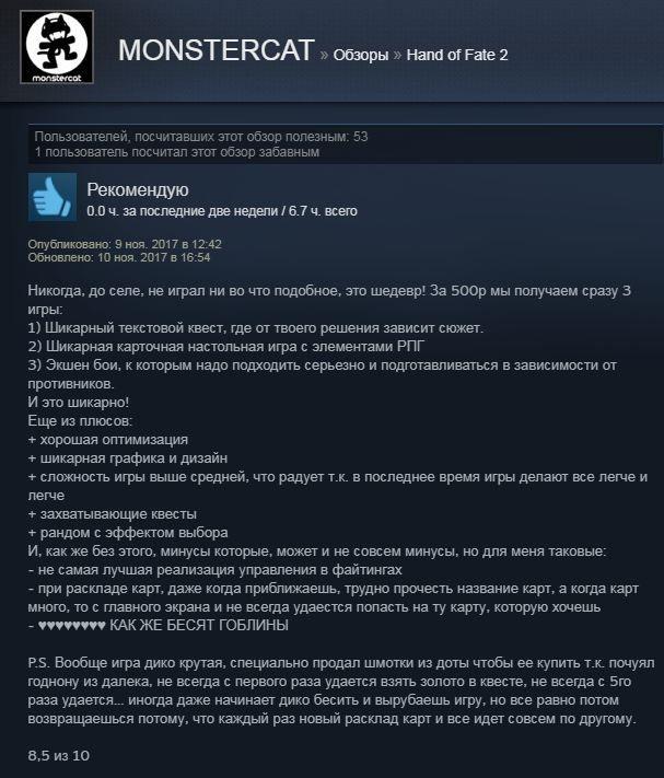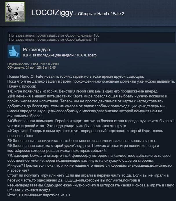 Отзывы об игре Hand of Fate 2: