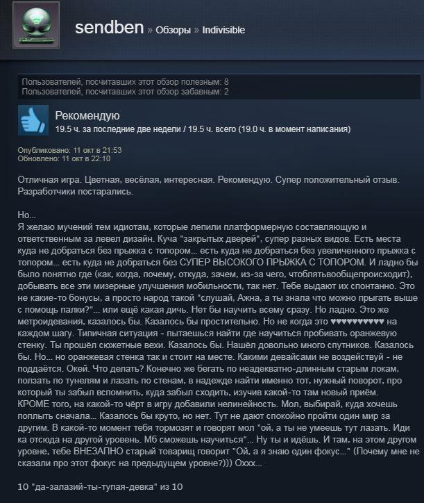 Приключенческий РПГ-экшен, совмещенный со стратегией и платформером, предлагающий отправиться в одно из самых опасных путешествий по фэнтезийному миру, управляя хрупкой, на первый взгляд, девушкой. Indivisible рассказывает о событиях, развивающихся в удивительном мире, который населяют монстры, уникальные существа, маги. В главной роли – Ажна, девушка, обладающая магическими способностями. Вам предстоит выяснить, зачем ей даны такие способности.