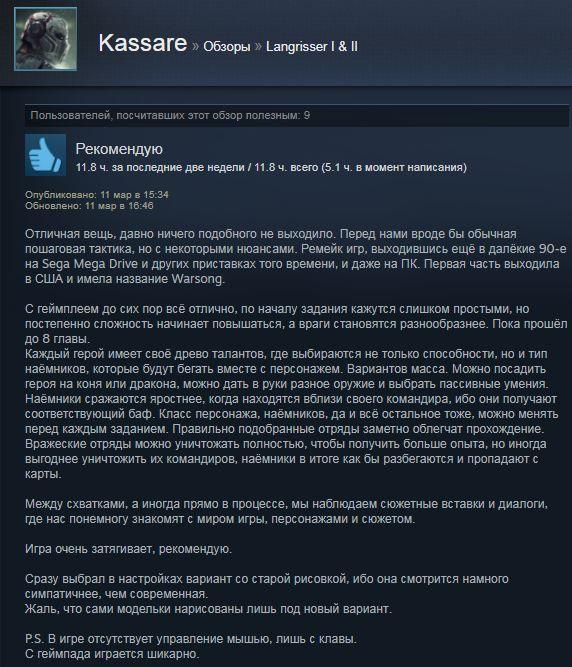 Переиздание двух частей популярной игры – Langrisser I & II, представленной в жанре ролевой стратегии. Вам предстоит снова окунуться в сражение между силами Тьмы и Света. Ремейк предлагает вам пройти тот же сюжет, однако увидеть все в новом обличии. Проведена не поверхностная, а полноценная переработка текстур, эффектов, звука, а также было добавлено множество нового контента.