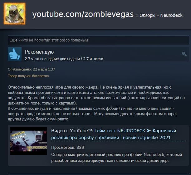 Отзывы об игре Neurodeck: Psychological Deckbuilder: