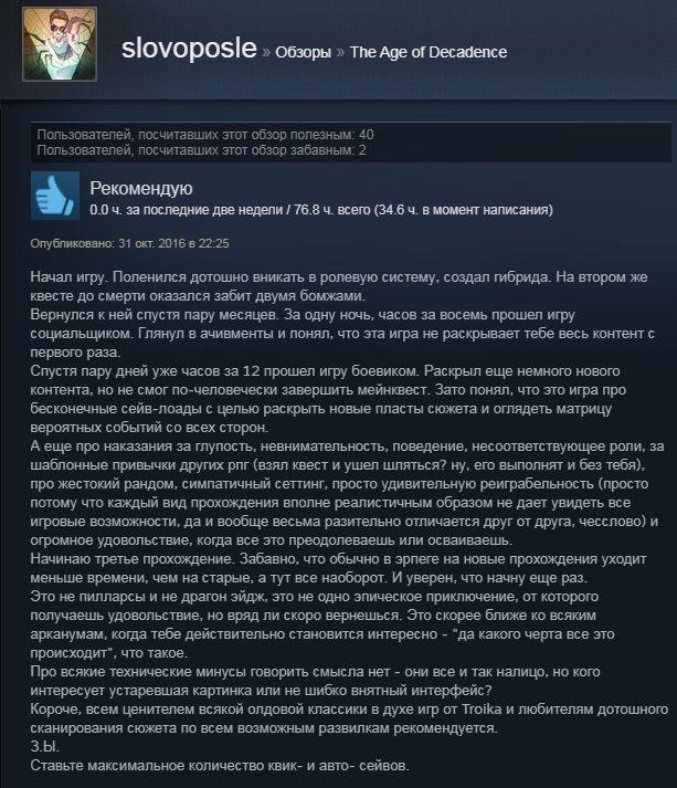 Отзывы об игре The Age of Decadence: