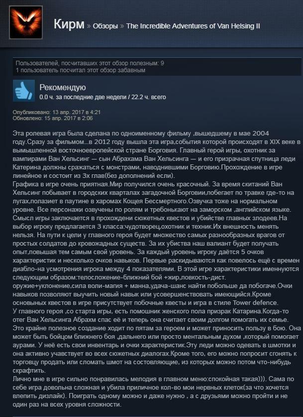 Отзывы об игре The Incredible Adventures of Van Helsing II: