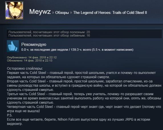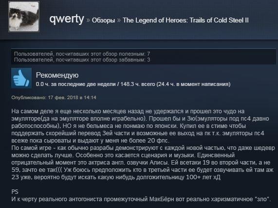Отзывы об игре The Legend of Heroes: Trails of Cold Steel II:
