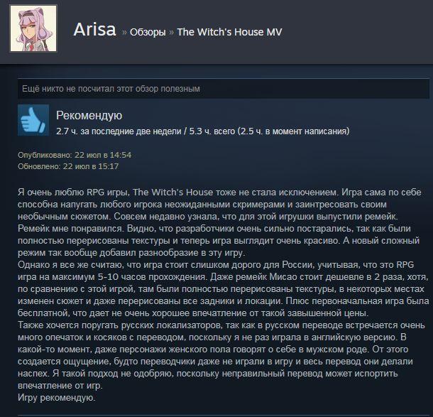 Приключенческая РПГ-игра, выполненная в аниме стилистике, где пользователи возьмут под управление молодую девушку по имени Виола. Действия игры The Witch's House MV будут происходить в таинственном доме. Где протагонистке предстоит разгадать множество тайн и секретов. Особенность места заключается в его регулярном видоизменении, проливая в реальность накопившиеся в стенах грусть, боль и страдания. Перед вами опасное приключение, которое на первый взгляд кажется простым, но на самом деле окутанное массой трудностей.