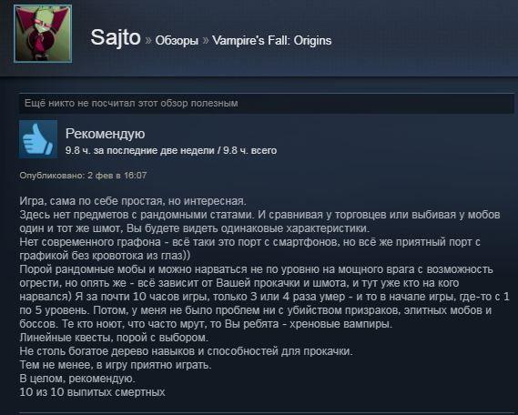 Отзывы об игре Vampire's Fall: Origins: