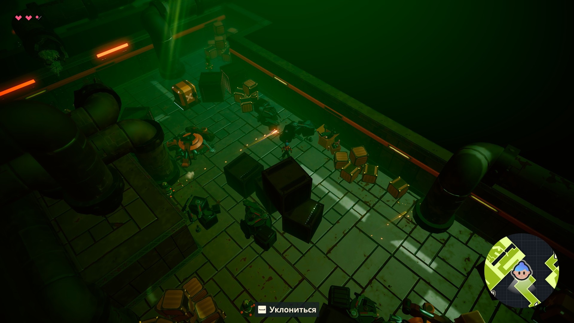 - Начните свое путешествие с видом сверху и изучайте окружающую среду с целью поиска полезных устройств;