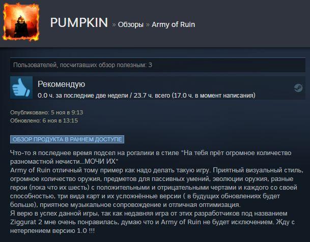 Army of Ruin – скролл-шутер с автоматическим геймплеем и элементами рогалика. Время осуществить защиту своих территорий от нападения безжалостных и подготовленных врагов. Чтобы эффективно противостоять противникам, придется опробовать все возможные комбинации, а также колоды с усилителями. Уничтожьте новобранцев и постепенно продвигайтесь через толпы более сильных существ, пока не доберетесь к генералу.