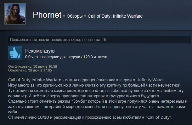 Отзывы об игре Call of Duty: Infinite Warfare: