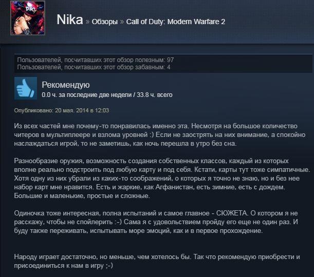 Отзывы об игре Call of Duty: Modern Warfare 2: