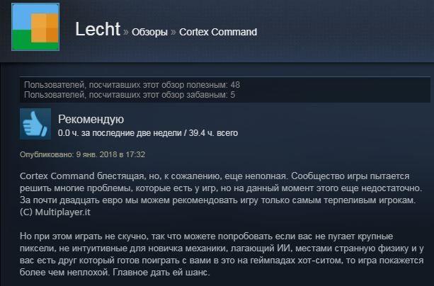Интересная инди-игра, воплотившая в себе несколько забавных задумок. После выхода получила множество наград от именитых организаций. Проект Cortex Command можно причислить к шутеру, которые сочетает в себе элементы платформера и аркады. Графика пиксельная, что в наше время не удивительно, ведь такой подход используется в приложениях, не направленных создать реалистичную картинку, а привлечь своим геймплеем.