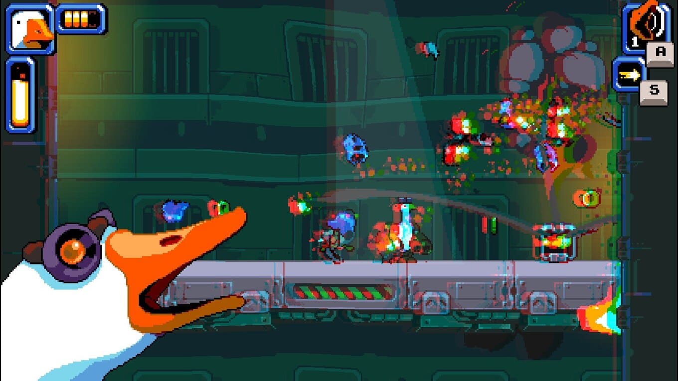 - В Mighty Goose доступно большое разнообразие боевых механик, благодаря которым сможете искоренить зло с каждого уголка мира.