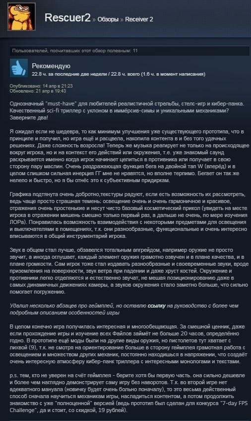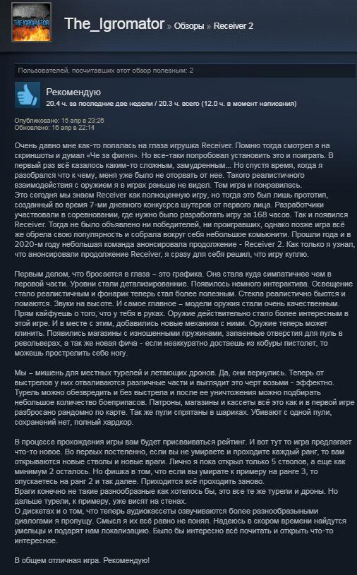 Продолжение оружейного симулятора, в котором разработчики соблюдают традиции первой части и сделали основной упор на симуляцию работы оружие и его механизмов. В Receiver 2 экшен переносится на второй план, но это не означает, что будет скучно. Помимо того, что игроки смогут насладиться реалистичностью работы пистолетов, автоматов и других видов оружия, они смогут принять участие в зрелищных перестрелках.