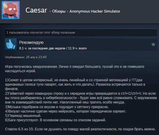 Смена языка: через файл steamconfig.ini по пути AnonymousHackerSimulator\Engine\Binaries\ThirdParty\Steamworks\Steamv153\Win64
