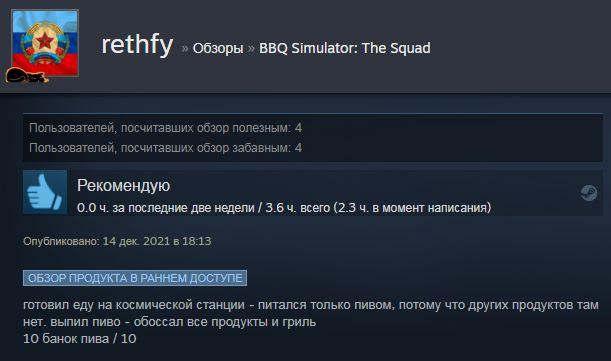 BBQ Simulator: The Squad – удивительный симулятор жизни, в котором упор делается на кулинарию, использующий механики песочницы. Пришло время сделать себе отличные выходные в компании с хорошими друзьями, грилем и прожаренными стейками. Проект не предусматривает каких-либо ограничений по способу приготовлению пищи. Используйте любые кухонные приборы и оборудование, готовьте на гриле или в микроволновой печи. Главное – следить за процессом готовки и всегда держать поблизости огнетушитель, кто знает, что может произойти.