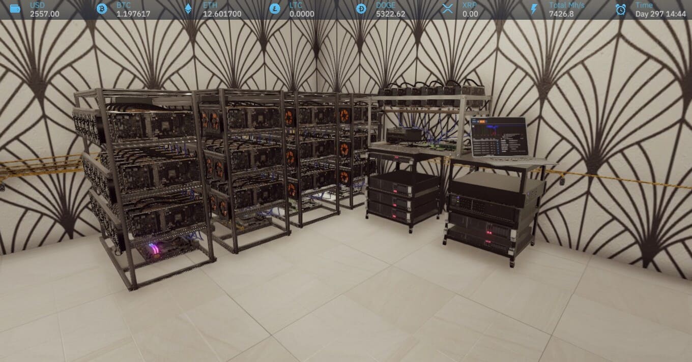 - Геймплей Crypto Mining Simulator предлагает создать ферму, оперируя недостаточным финансированием;