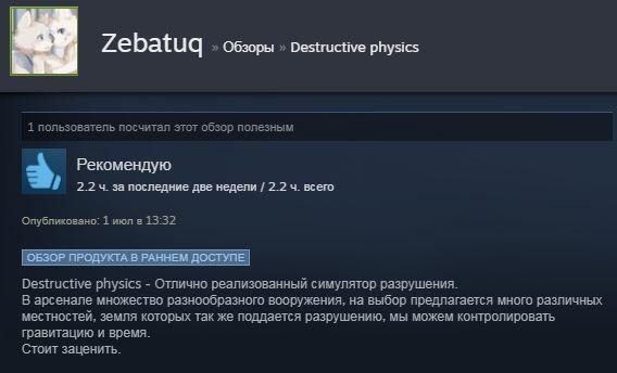 Отзывы об игре Destructive physics: destruction simulator: