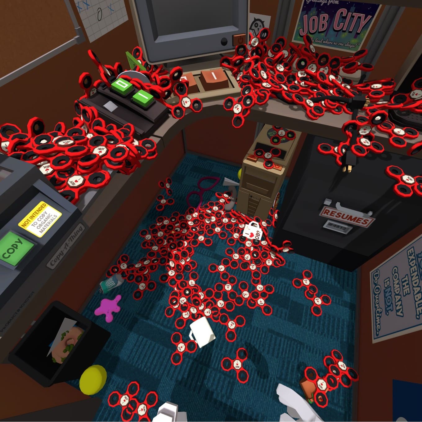 Job Simulator – симулятор работы во времена далекого будущего, когда труд в большей степени завязан на роботах, а не физическом участии живых существ. Сами же люди, практически не используют свои физические возможности в решении многочисленных задач. Попробуйте себя в роли человека, который контролирует роботов на работе и в быту. Но главное не это, протагонист желает опробовать на себе обязанности предков и самостоятельно прибегнуть к работе по одной из доступных профессий.