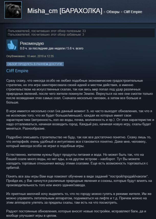 Отзывы об игре Cliff Empire: