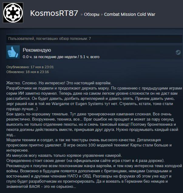 Combat Mission Cold War – стратегия с элементами песочницы, позволяющая пережить выдуманные события Холодной Мировой войны. Таким образом, пользователи смогут посмотреть, кто мог бы победить, если бы произошли определенные события. В центре внимания две крупнейшие державы: США и СССР. В распоряжении большой ассортимент боевой техники и вооружения, воссозданного с невероятной реалистичностью. Управляйте бойцами, отрядами, целыми батальонами – здесь возможно все.