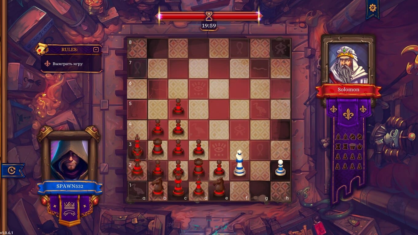 - Главной фишкой стало то, что часть доски скрыта от вас туманом войны, что делает расположение фигур противника невидимым;