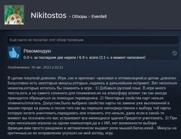 Everdell – известная настольная игра, которая перенеслась в цифровую плоскость, где игрокам посчастливится взять под контроль город и привести его, вместе с жителями, к небывалым высотам. Чтобы достигнуть успеха придется правильно распоряжаться ресурсами и вовремя их накапливать. Фанаты игры будут довольны, ведь разработчики не вносили ничего лишнего – процесс остался максимально приближен к оригиналу.