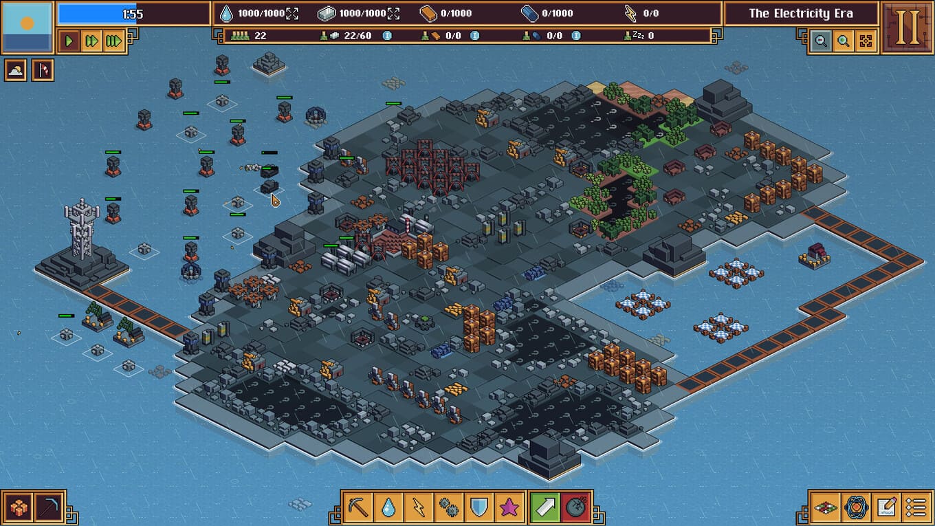 - Сооружайте цеха, соединяйте их между собой, добывайте ресурсы и направляйте все силы на строительство ковчега;