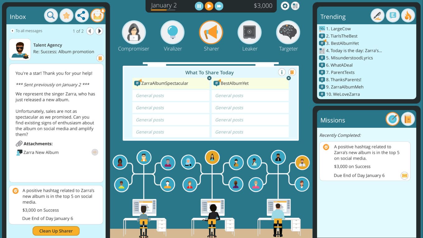 Influence, Inc. – вашему вниманию представлена стратегия, скомбинированная с симулятором, в которой вы выступите в роли управляющего цифрового агентства. В задачи пользователей входит продвижение товаров, услуг, знаменитостей, работа с рекламой, а также разработка новых способов получения прибыли. Попробуйте из маленькой кампании создать крупный процветающий бизнес, заполучив максимальное влияние в нише.