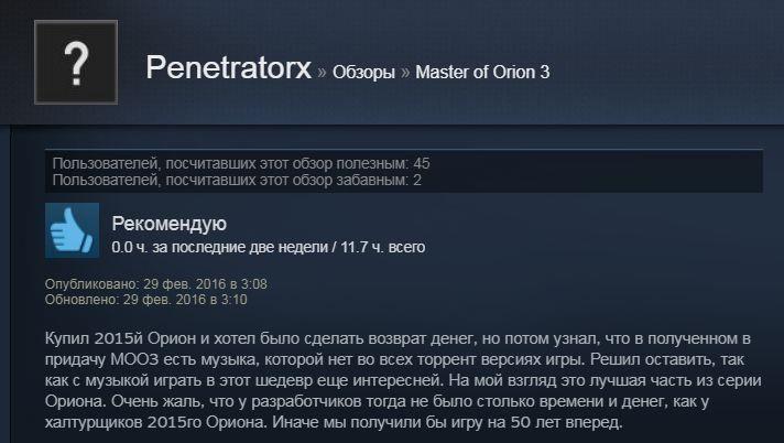 Отзывы об игре Master of Orion 3: