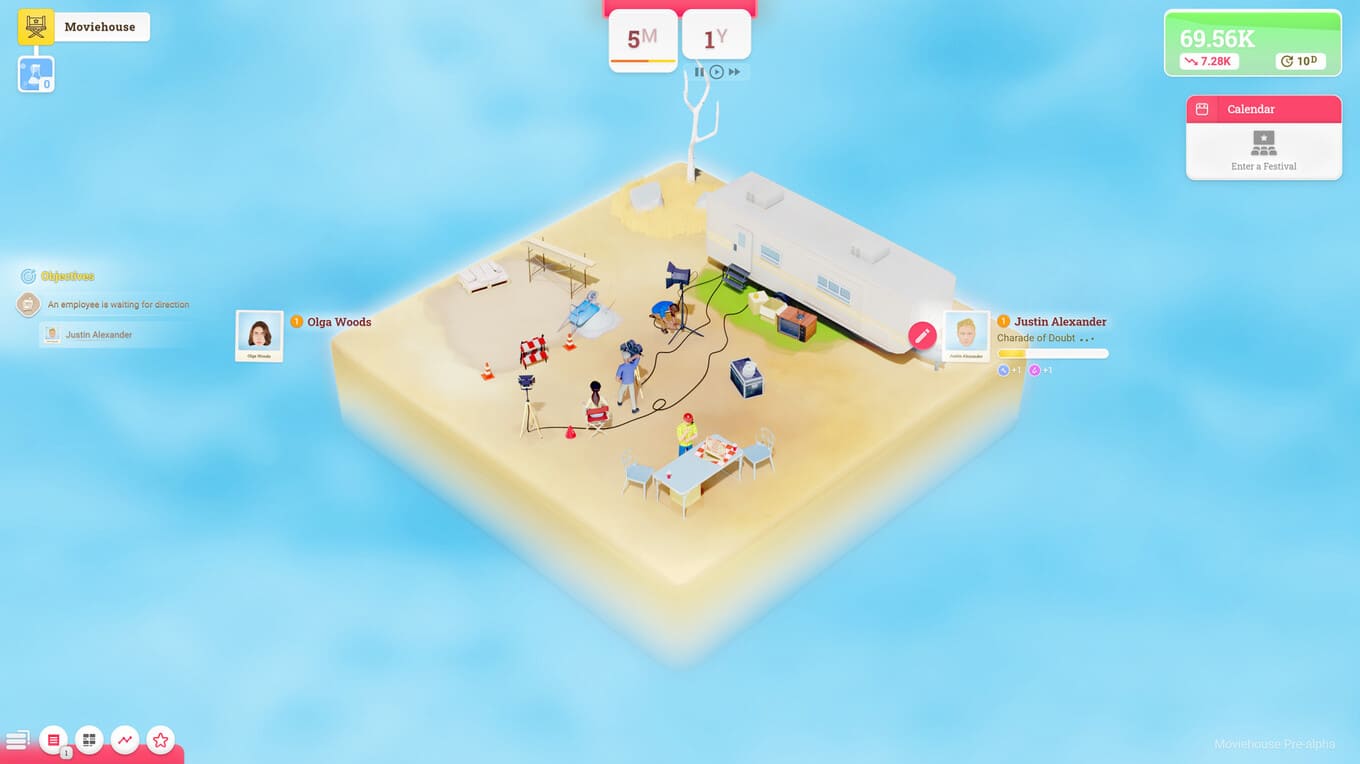 Moviehouse – стратегия и симулятор, где под ваш контроль подпадает киностудия, вместе с которой нужно пройти путь от любителя снимать видео до профессионала киноиндустрии. События берут начало с 80-х годов, когда происходило активно развитие многочисленных студий. Вовлекайтесь в процесс, нанимайте персонал, сценаристов, операторов, налаживайте производство и продажи. Придется много работать с персоналом, а также изучать конкурентов, чтобы занять высокие позиции в мировом рейтинге.