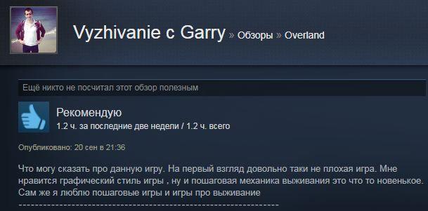 Игра, представляющая собой необычную выживалку в апокалиптическом мире, где в ваше распоряжение передадут группу людей, путешествующих по Северной Америке и пытающихся выжить. В Overland, после апокалипсиса, практически все уничтожено, а выживание усугубляется тем, что мир наполнен монстрами и различными тварями.