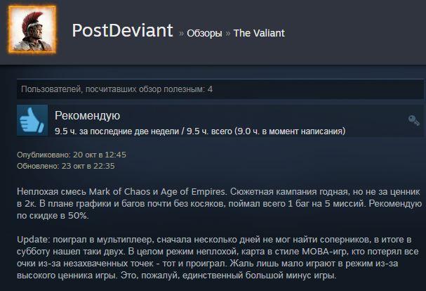 The Valiant – время перемещаться в 18 век и проникнуться историей о воине-крестоносце Теодорихе Акенбургском, который в последнее время разочаровался в военном деле, однако в последнее время решил вновь вернуться к боям. После получения информация, что бывший напарник героя хочет разыскать артефакт, способный одарить владельца безумной силой – вы должны опередить его и заполучить предмет раньше. Это путешествие сквозь Европу и другие территории, где придется сразиться с огромной армией противника и первым добраться к артефакту.