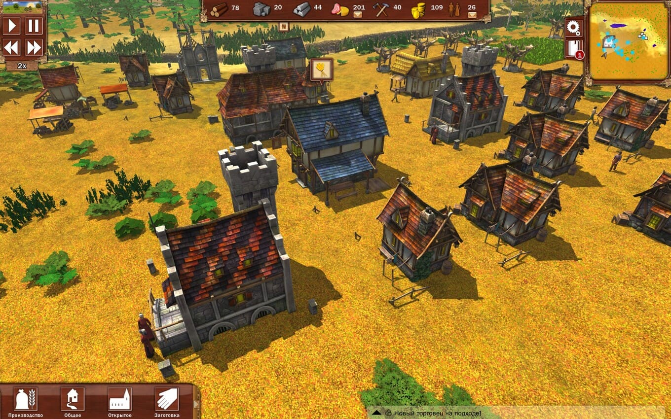 - Игровой процесс Villagers предлагает выстраивать сооружения, добывать ресурсы, управлять социальной сферой, а также развивать культурную и военную область;