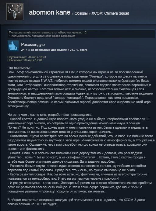 Отзывы об игре XCOM Chimera Squad: